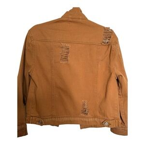 Refuge Tan Jean Jacket Fitted Distressed Size Small