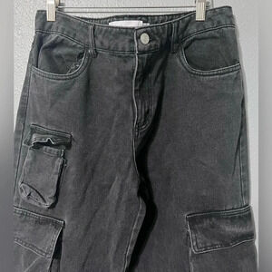 Refuge Women’s Cargo Jeans Sz 7/32 Waist Junior Faded Black Wide Leg Worn Once 32x32
