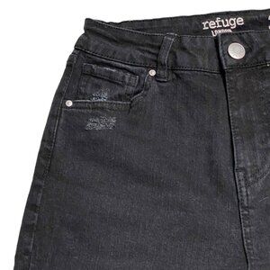 Refuge Women's High Rise Slim Straight Distressed Black Jeans Size 3