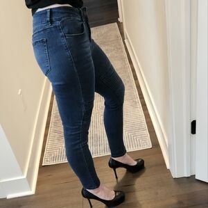 Awesome and stylish jeans from Refuge. These preloved beauties have awesome detail on the legs. They are a dark blue and very comfortable high-rise skinny jean, perfect for any occasion. These jeans have stretch, offer a sleek fit, and modern design.