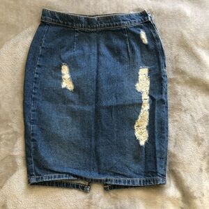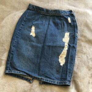 Refuge distressed high waist denim skirt size small never worn / has invisible side zipper / non stretchy