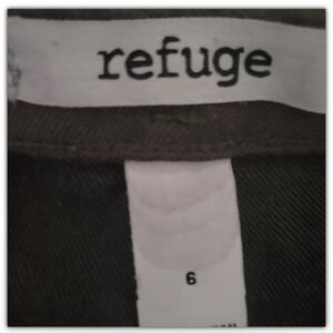 Refuge partial button fly high waist size 6 see pics for verification of size used no holes or stains measurements approximately flat lay waist 14 front rise 11 inseam 2