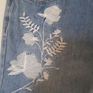 Refuge Floral Embroidered Cropped Jeans Size 2