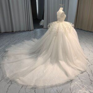 Regal Modern Princess Beaded Cage Bodice Ball Gown Wedding Dress