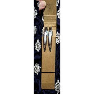 Fun and functional wood pen and pencil set from Regal Nissan of Roswell, Georga. They have a light wood exterior, and silver tone accents in both shiny and frosted. The both work, but I'm not sure how much ink or lead are left in them. They come in a thin cardboard holder with an elastic closure. There are small squiggled on the inside from checking to see if they work.