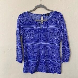 Regal Paisley Long Sleeve: Blue & White, Size M, The Limited
