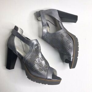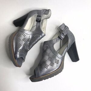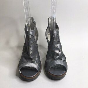 Regarde Le Ciel Womens Silver Leather Perforated Sandal Open Toe Buckle Heel 39
