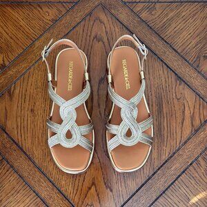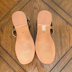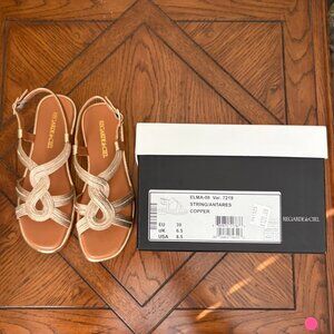 The box describes these sandals as copper, but they read more as gold. Cover photo shows accurate color. Excellent condition. Never worn outside.