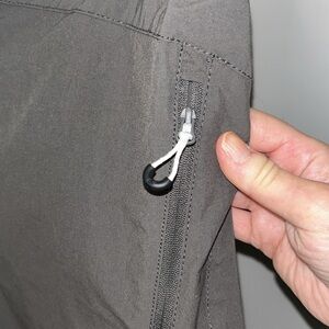 These shorts are in EUC, lightweight and comfortable. Waist has side elastic support as well as a button and zipper closure.