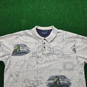Regatta Polo Shirt Mens Large Gray Map Print AOP Short Sleeve Preppy Casual Golf