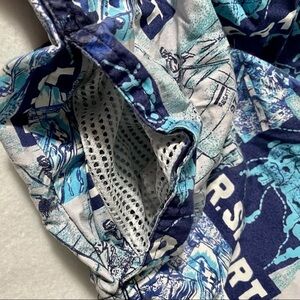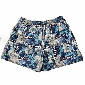 Vintage Regatta Sport Sailing Print Swim Trunks Size Large. Mesh liner and pockets with draw string elastic waist.