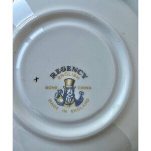 The Regency English bone china cup and saucer set exudes elegance with its intricately painted floral rose pattern and refined gold trim. Crafted in England, its delicate design offers a luxurious tea experience. The set's high-quality material ensures durability and timeless appeal, making it an ideal choice for collectors or those appreciating fine tea service.