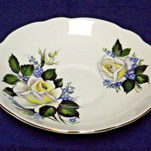 We are offering this Regency roses floral footed tea cup and saucer for sale.