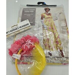 Regency Romance Parade Gown Bridgerton Cosplay Costume Yellow Floral L/XL 10-12