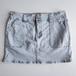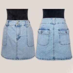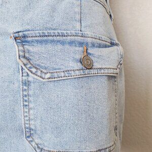 Regeneration by Celebrity Pink Blue Denim Cargo Mini Skirt in Mid Rise