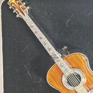 A new in original box Regent Square collectible ornament. This metal, silver plated ornament is shaped as an acoustic guitar with crystal embezzlement's. Measures approximately four inches. Non-smoking pet free home.
