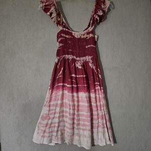Reggae Tie Dye Mini Dress Cinched Chest Fit And Flare Beachy Boho Indie Vacation
