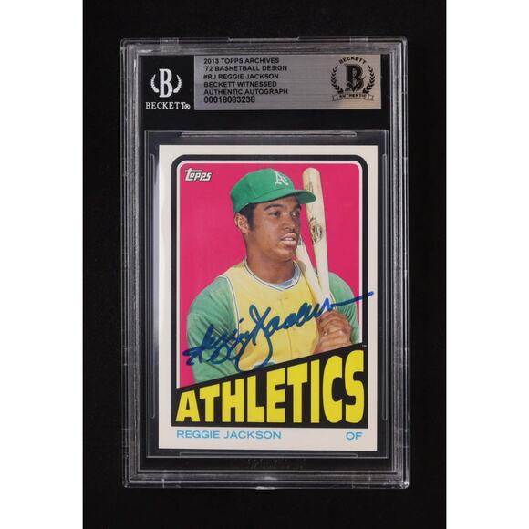 Own a piece of sports history with this Reggie Jackson signed 2013 Topps Archives basketball card! Authenticated by Beckett Witnessed, this card is a must-have for any serious collector.