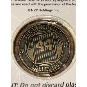 Own a piece of baseball history with this Reggie Jackson The Immortal's 2005 Medallion Baseball Hall of Fame Yankees Coin. Celebrate the iconic player and his contribution to the sport with this vintage item. The coin features the New York Yankees team and year 2005 as well as the player himself, Reggie Jackson.