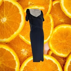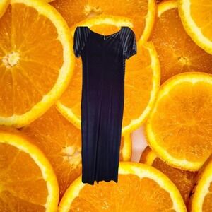 Reggio Black Short Sleeve Long Dress With Velvet Striped Top Size 10