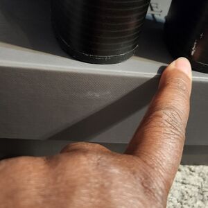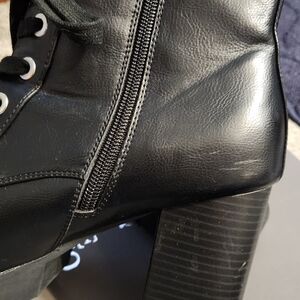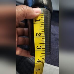 Gently used a few flaws found, finger pointing to scuff marks. designer unknown