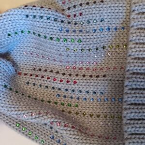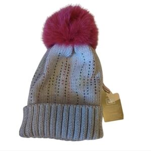 soft wool beanie cap with colored rhinestone sparkles. fuschia real fox fur pom pom. The finest hat you will Ever own. purchased at Neiman Marcus. new with tags. chic