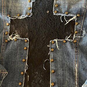 Rehab Denim Jean Jacket Punk Rock Lace Cross On Back Womens Small