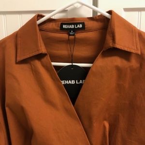 Rehab Lab Rust Cinch Mini Dress!! Light weight cotton and spandex perfect for spring and summer.