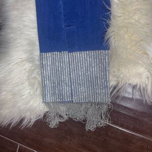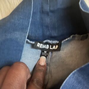Rehab Lab denim high waisted rhinestone/chained fringe hem sz medium