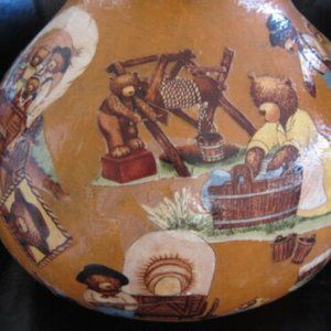 Rehwald Signed large decorative children gourd with teddy bears in western gear.