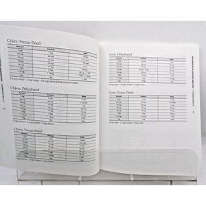 Rehydration Calculations Made Easy by Wanda Bailey Clark is 2 books in 1. Filled with charts the amount of water to dehydrated/freeze dried foods, One side is in US Measurements and Flipping it over the second side is in Metric Units. Extremely useful for those with survival foods in their pantry. Published by Furrow Press ©2013 Paperback. Some edge staining and Book is stiff as if never used.