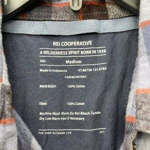 Rei Button-Up Shirt Men's Sz M Multicolor Plaid Collar Curved Hem Front Pockets