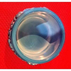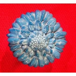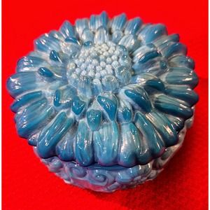 Reidel Bohemian Czech Blue Malachite Glass Powder Box SunFlower Design