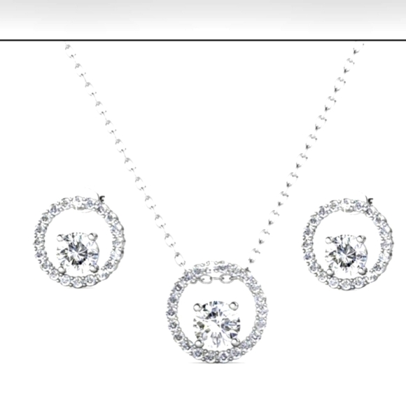 Reign 18k White Gold Necklace and Earrings Jewelry Set with Crystals.