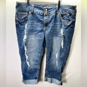 Reign Distressed Capri Jeans Pants Womens 22W Plus Stretch Cute Summer Mom 2093