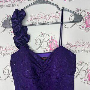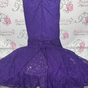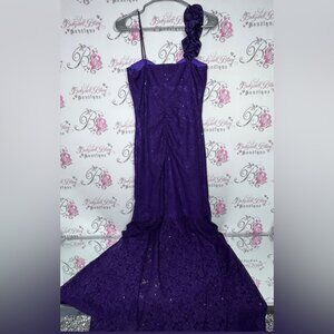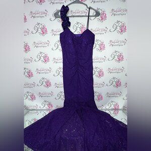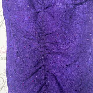 Reign on dress fancy sparkly rutched purple ball gown formal open slit mermaid