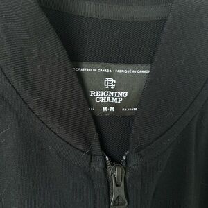Experience the perfect blend of style and functionality with the Reigning Champ Black Lightweight Jacket. Crafted with a minimalist design, this jacket features a sleek stand-up collar and a full-length front zipper, offering a tailored fit that complements any casual or athletic ensemble.