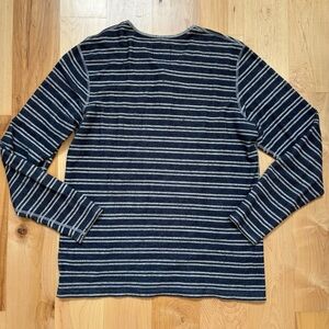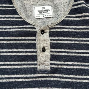 Reigning Champ Long Sleeve Striped Henley in Heather Blue/Gray