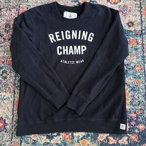 Reigning Champ Sweater Mens XXL Black Crewneck Spellout Logo Casual Preppy Logo
