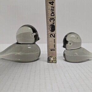 Reijmyre Glasbruk Sweden Mid century modern Smokey Gray Crystal Glass Bird Figurines Paperweights Set Of 2.