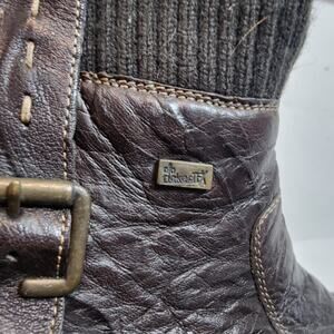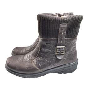 Reiker Sz 41 (9) Hillary Brown Crinkle Leather Boots Knit Ankle Faux Fur Lined