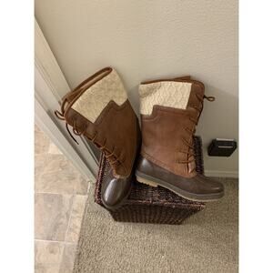 Reila Women's Lace-Up Duck Boots Size 8.5 Brown Faux Leather Knit Upper Rubber