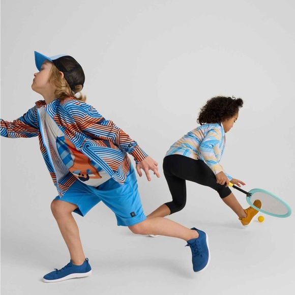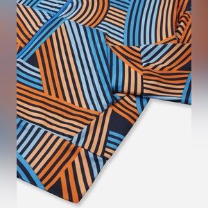Vibrant light jacket with geometric patterns. Features a front zipper and pockets.