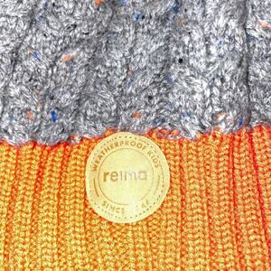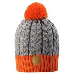 Reima Weatherproof Kids Hat Winter Beanie Pom Eur 52/54 US Small/ Medium Wool Fleece Lining POHJOL Orange Gray 538077, 50% Wool, 50% Acrylic