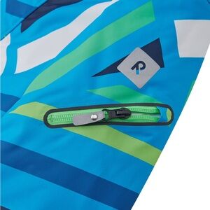 Keep your child warm and stylish with the Reima Kids One Piece Snowsuit. Featuring a vibrant blue and green pattern, this snowsuit is perfect for winter adventures.