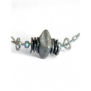 * Silver-tone chain bracelet with matching beaded centerpiece and spring ring clasp