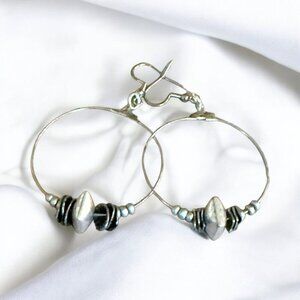* Lightweight silver-tone hoops with matte silver center bead and black/silver spacer accents