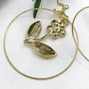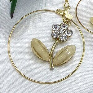 FEATURES: Flowers of rhinestones and leaves of acrylic dangling in gold-tone stainless steel hoops and hooks. See photos for more details.