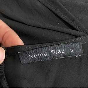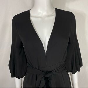 Reina Diaz Deep V-Neck Bishop Sleeve Black Pantsuit Jumpsuit