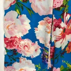 Reina Diaz Womens Pants Blue & Pink 7 Floral Print Wide Leg Zip/Hidden Clasp Closure Mid-Rise Hip Pockets Chic Relaxed Party Classy EUC